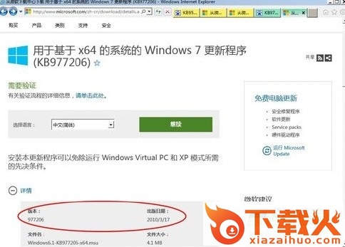 打开微软官网相应更新补丁下载页面,