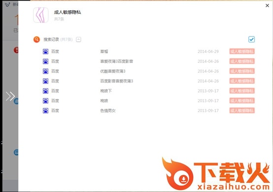 1.支持精准清理。比如用户只选择“高危隐私”中的“成人敏感隐私”,就可以只清理成人相关的网站访问、搜索及下载记录等,而不会将所有上网痕迹都清除。