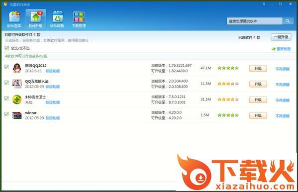 迅雷软件助手是一款由迅雷官方推出的电脑软件,具有系统漏洞修复、软件备份、软件升级、软件管理等多重功能,操作简单,需要的朋友赶紧来绿色资源网下载吧! 软件介绍迅雷软件助手,是一款系统增强工具,集成软件...