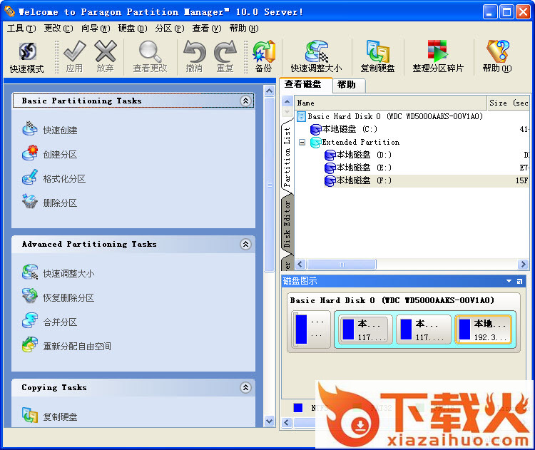2.对磁盘进行分区,并可以在不同的分区以及分区之间进行大小调整、移动、隐藏、合并、删除、格式化、搬移分区等操作。