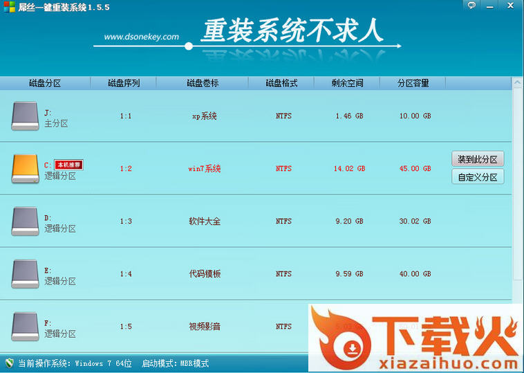 屌丝一键重装系统只针对系统盘操作,确保其它盘符的数据都还在。