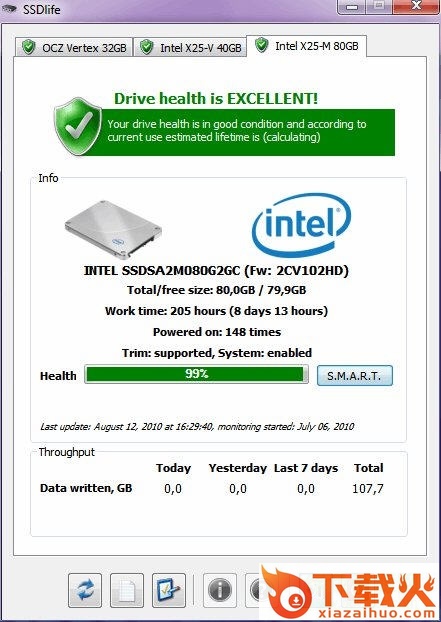 SSDLife支持几乎所有使用中的固态硬盘 – 从英特尔的最新机型,经过时间考验的第一个顶点模型。 SSDLife已经过测试,固态硬盘大多数SSD制造商 – 如金士顿,OCZ的。 甚至与苹果MacBook Air!(其实兼容性没问题,连阿象的杂牌子的金胜硬盘也能识别)