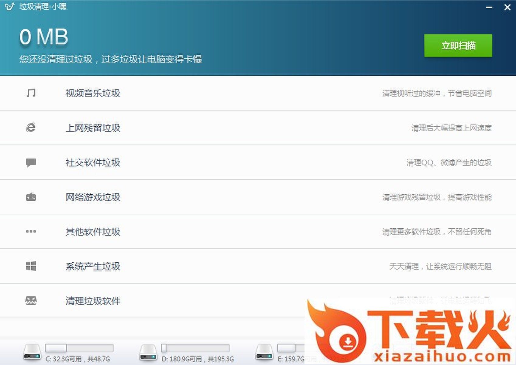 金山新毒霸的电脑清理工具,本版由小嘿(xxkzsk)修改,去除清理完成后的微博分享按钮、关闭界面后百宝箱的提示等;支持扫描中的软件图标的完全显示,方便携带,随时随地打开,一点即可。它有着绚丽的界面,无论是启动画面还是扫描界面,设计的都是大气有档次,而且还有着和界面一样强大的功能,不失为国产清理软件中的精品,极炫垃圾清理,就要爽的感觉!