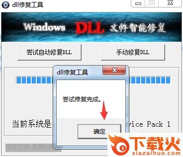 修复完成后会弹出修复完成,点击“确定”即可。