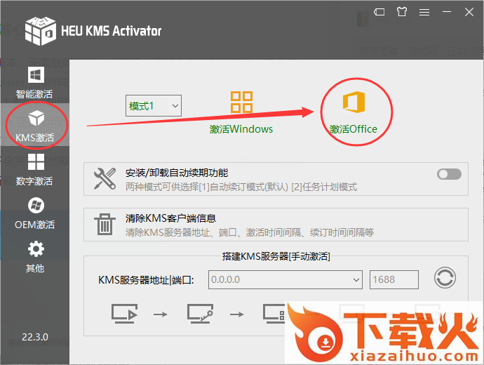 ps:kms提供两种激活模式,模式1自动续订模式(默认),推荐选择这个,因为激活到期后,就会自动续订,就不用每次重新激活;模式2任务计划模式,就是到期后,需要手动再次激活,比较麻烦。