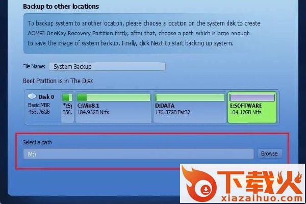 4、其他位置备份系统:Windows PE micro-system将备份恢复分区,但系统映像备份用户喜欢的地方,如分区D,或其他分区。这是下面图片中的第二选择