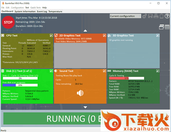 burnintest免费版是专门用来测试电脑系统软件的应用工具,功能比较强大,可以协助个人电脑故障排除和诊断,包括测试硬盘、网络、声卡、脚本、串行端口、电池、显卡GPGPU等系统数据,避免代价高昂的停机时间,系统重建和数据丢失。