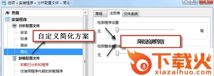 自定义配置是一种参数模板,可以额外创建用户的配置。比如默认的配置都需要严格检测安装文件位置,拖慢分析速度。如图所示,可以创建额外的“简化”配置,降低文件检测等级。不重要的软件卸载时,可以利用“简化”配置,用精确换速度,提升分析效率。