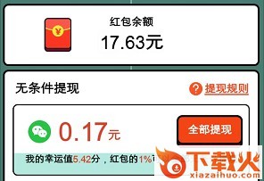 红包奖励是按百分比兑换的,可惜奖励小了点。