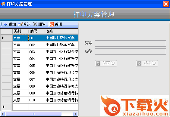 方案管理:各大银行各种格式的票据、添加、修改。