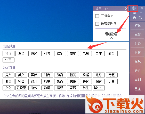3、点击设置按钮--频道管理,可定制自己关注的新闻