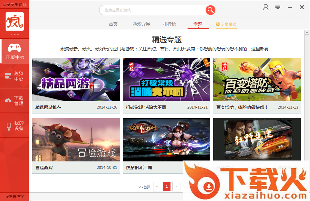 疯子助手官网-国内首款无需闪退修复的苹果助手。同时支持iPhone、iPad、iTouch等iOS设备的软件、游戏资源的下载安装。游戏、应用一键安装,永不闪退!
