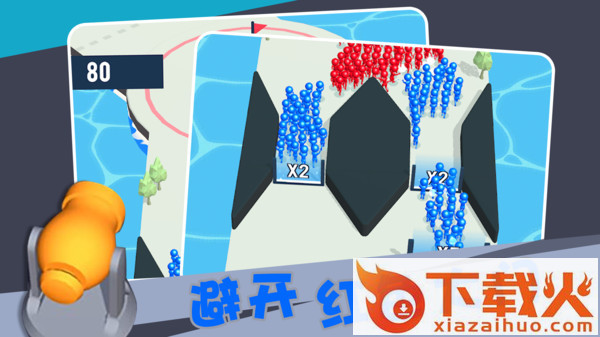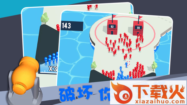 裂变战争,一款休闲竞技小游戏。这款游戏主要是红蓝小人双方的战争,玩家操控你的小人不断聚拢更多人群,炮轰敌方的大门,指挥小人占领敌方基地获取更多的胜利。