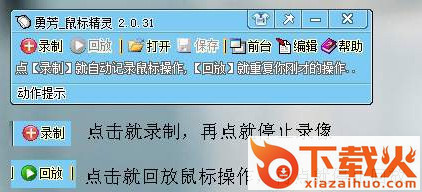 勇芳鼠标精灵是勇芳软件官方打造的记录鼠标操作的工具,录制鼠标操作过程后,就可以模拟鼠标操作,达到自动点击的目的,对于需要鼠标重复操作的事情用这个软件绝对好用。