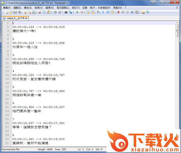 转换后就可以去看看SRT的字幕内容罗,中文也是没问题的。