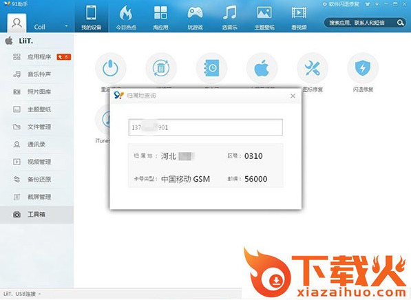 将手机连接电脑上的V5助手——设置——工具箱——归属地查询。