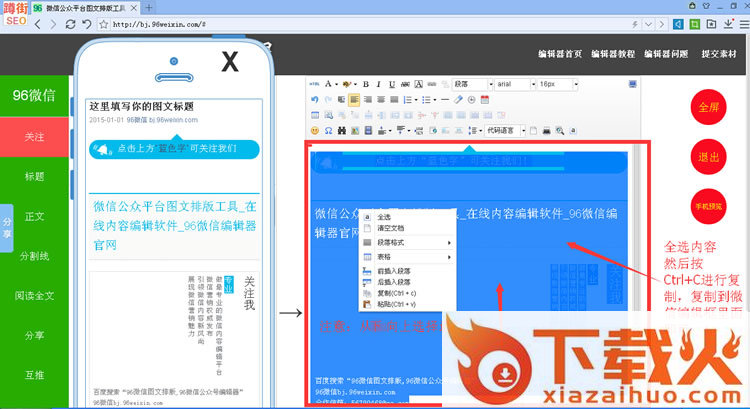 5.或者按Ctrl+C进行复制,打开微信公众平台-素材编辑,按Ctrl+V进行粘贴即可。