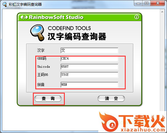 彩虹汉字编码查询器是一款多功能汉字编码查询软件,可以查询单个汉字的多种编码,包括GBK码、Unicode码、王码86以及拼音,软件使用非常简单,只需输入汉字即可一键查询。