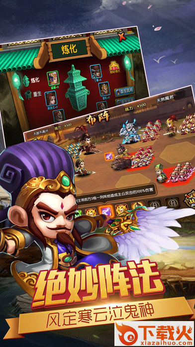 2、知名武将任你培养,强悍军队随意组建,排兵布阵,上阵杀敌。