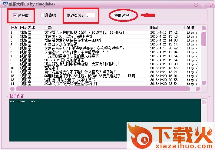 1、勾选线报屋/赚客吧,填写提取页数,点击提取线报;