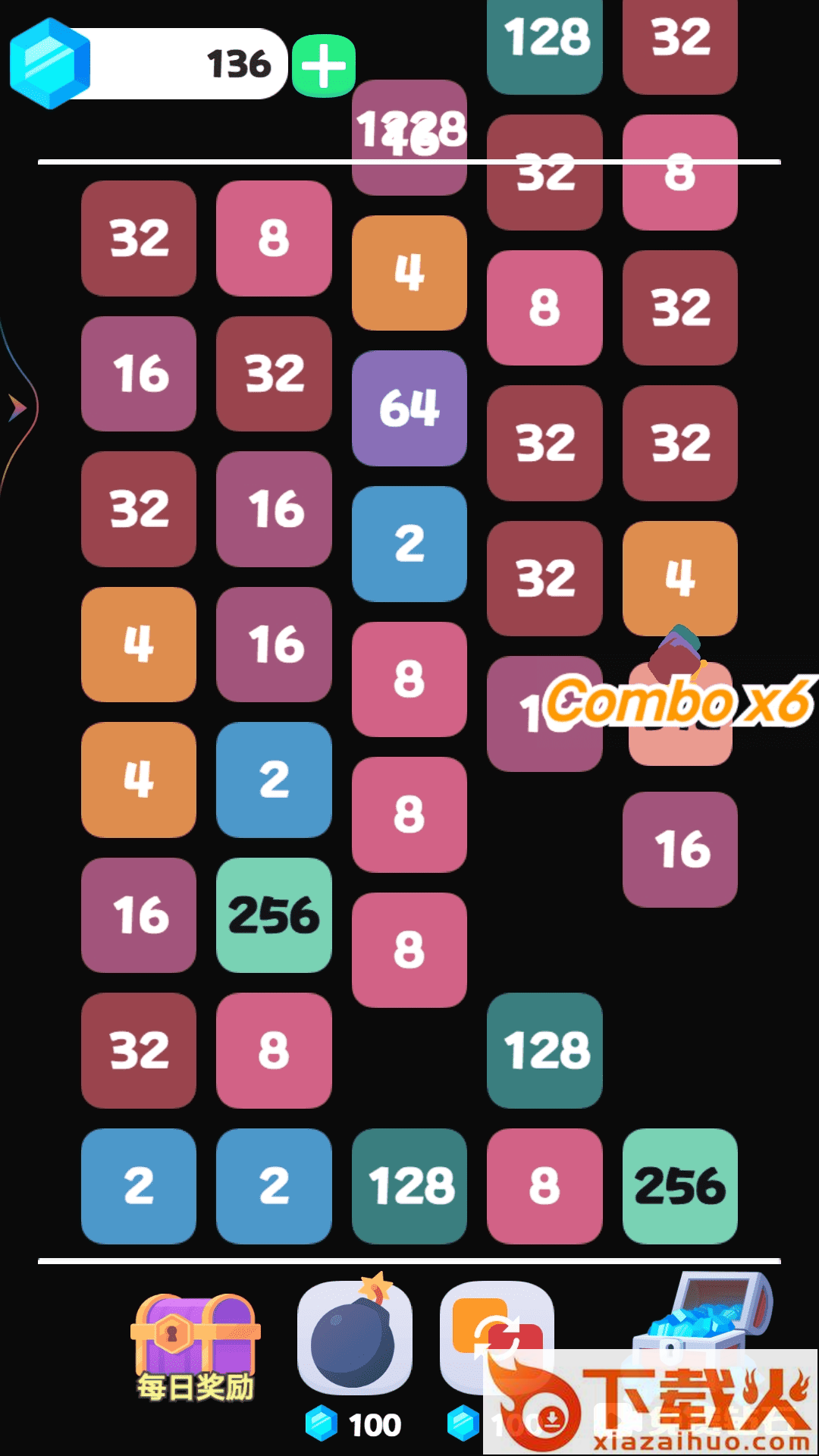 3、只要能将小球上的数字进化到2048就能过关,刚开始游戏很简单,越往后面游戏越难,操作越精彩;
