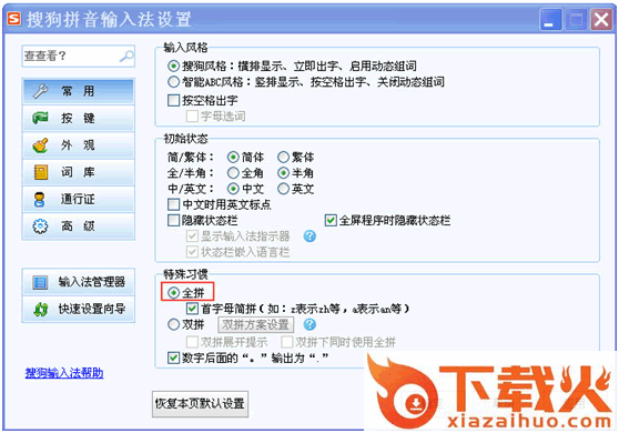 打开输入法菜单→设置属性→常用→特殊习惯→选择“全拼”这个选项(见下图)