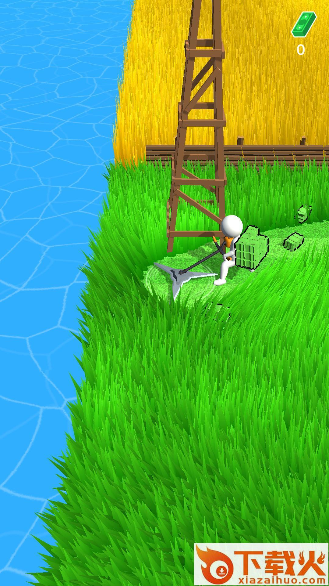 主要的玩法是割草和养殖。玩家需要控制小人去操场割草,割完草时候放到农场的卡车进行运输。
