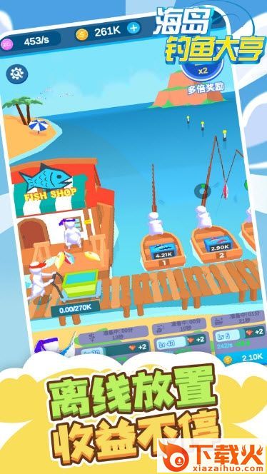 2、轻轻松松赚取金币,让你可以慢慢收集资源,摇晃你的收集屏幕来抓鱼。