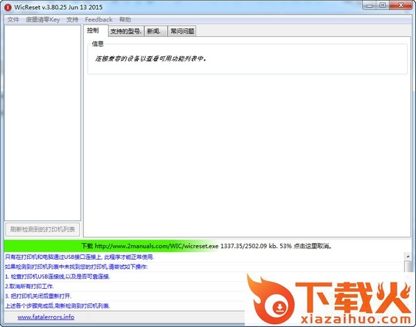 只有在打印机和电脑通过USB接口连接上,此程序才能正常使用。
