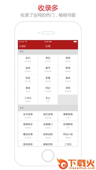 3.有男生小说和女生小说,不同类别的小说分类特别详细。