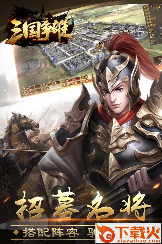 《三国争雄》是一款小局制三国战争策略手游。游戏将带您梦回三国时代,作为一方诸侯,招兵买马,发展内政,招募武将,征讨四方。游戏在大地图上还原汉末州郡城池,玩家从割据一方开始,不断攻城略地,扩张版图;群雄争霸,纵横捭阖,一统江山,成就霸业。