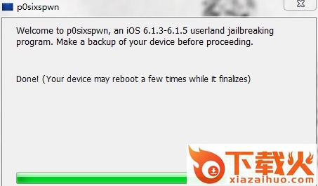 第四步:《p0sixspwn》提示:【Done!】越狱成功,设备将自动重启