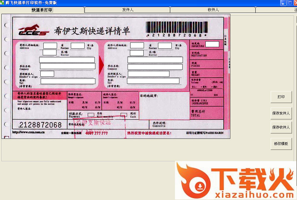 5.免费版会在快递单的左上角打印出我们的官网网址。其他功能与注册版相同。