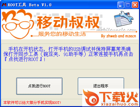 第四步:电脑和手机同步连接后,打开移动叔叔ROOT工具,点击工具上的“点我进行ROOT”