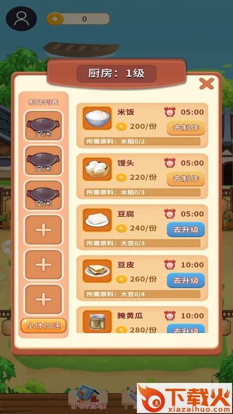 升级等级以解锁更多农田。不同的作物和蔬菜需要不同的时间才能成熟。完成任务以获得加速道具!