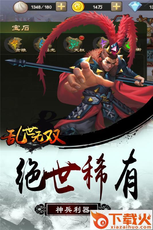 《乱世无双》是一款以三国为背景的,ARPG卡牌游戏。以收集游戏角色形象为核心玩法作为初始的出发点,从游戏初期的单人体验,到中期的玩家排行榜轻度交互,以及组队打BOSS,再到后期大规模军团战争的发动,都能让玩家有不同的感受。拥有奇妙的游戏剧情,独特的副本玩法,绝世稀有的神兵利器,全面的培养流程让玩家体验到别样的三国世界!