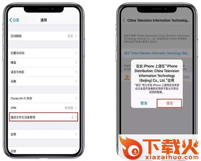 5、安装完成后打开 iPhone 设置 - 通用 - 描述文件,找到刚才安装的软件并点击“信任”后就可以使用了。