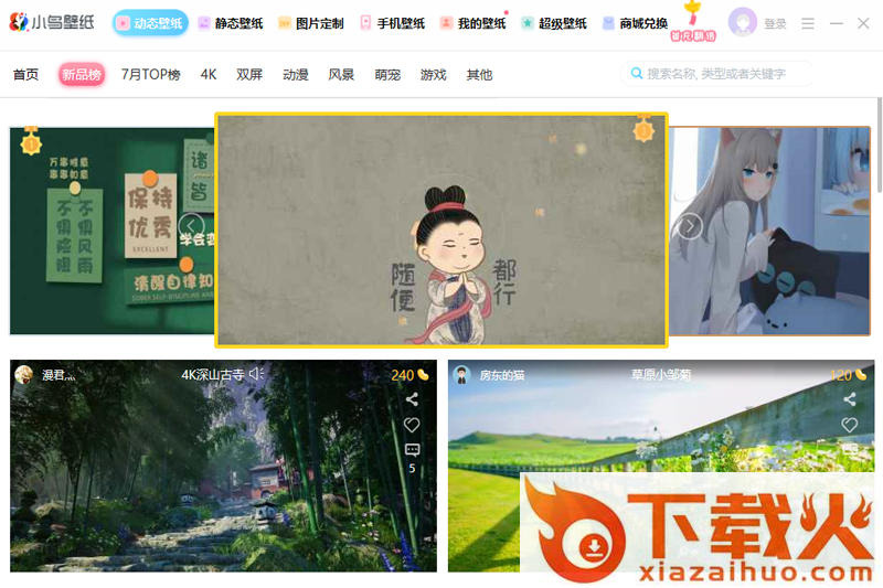 3.在“静态壁纸”里,根据分类寻找壁纸,或直接在搜索栏中进行查找