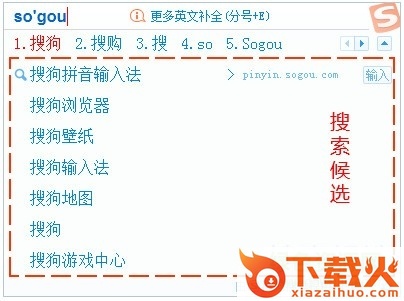 您可以用鼠标选择搜索候选词,点击后将打开搜索引擎搜索候选词。