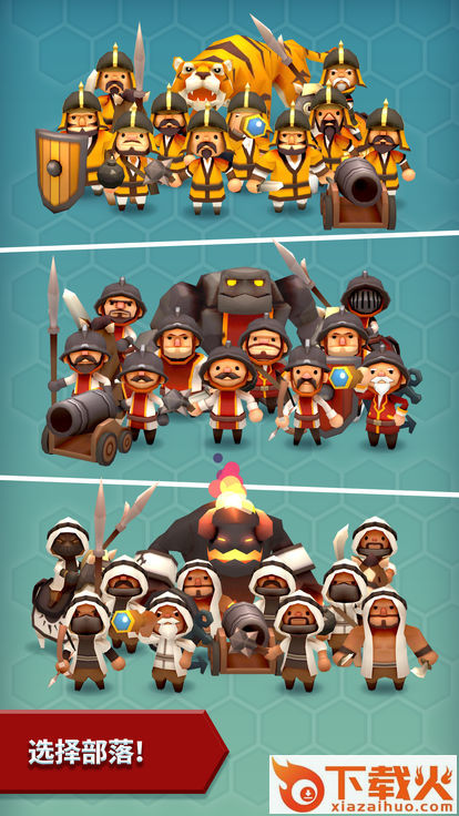 1、游戏画面场景精美卡通,英雄部落种类丰富多样,玩家可自由选择自己喜欢的;