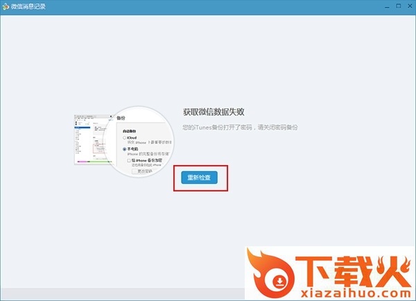 3.在同步助手中的“获取微信数据失败”提示中点击“重新检查”即可。