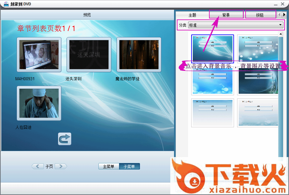 这些设置大家都看看试试,点击背景进入DVD菜单背景音乐、背景图片设置等