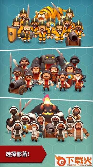 1、游戏画面场景精美卡通,英雄部落种类丰富多样,玩家可自由选择自己喜欢的角色;