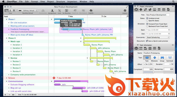 Omniplan for mac是Mac OS X平台的的一款非常强大的项目管理软件,它提供的功能包含了自定检视表、阶层式的纲要模式、成本追踪、里程碑、任务限制与相关性、资源分配、时程控制、Gantt 图表、违反事项显示、关键路径等等。