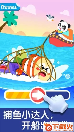 宝宝的任务就是用小手指点击各种可爱的海洋生物将他们钓上船,不过要小心庞大的鲸鱼和鲨鱼哦,不然可能会翻船的!标准的多国童声发音,能在游戏的同时帮助宝宝认识各种海洋生物。不仅有助于认知,还可以培养宝宝对大自然的热爱。赶紧来帮熊猫宝宝钓鱼吧!