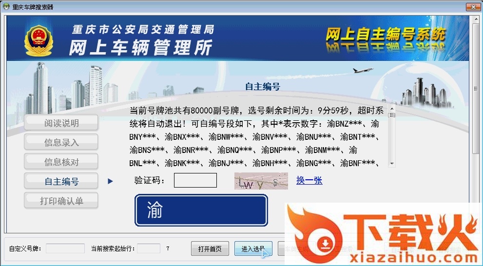 2.进入软件主界面后,手工点击 打开首页》》进入选号》》车牌生成