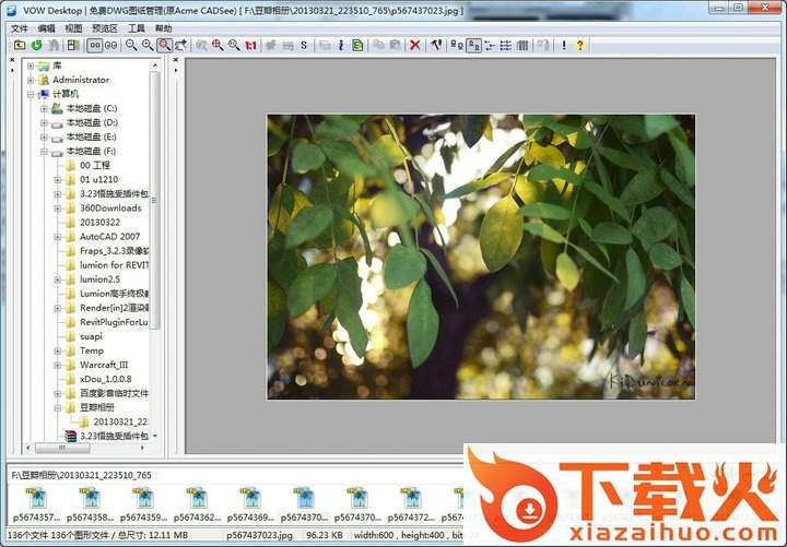 VOW Desktop(图纸资源管理器)是一款高效快捷的CAD文档和图片查看浏览软件,它是一款二合一的CAD工具软件,包含一个CAD文档浏览软件和一个CAD文档查看软件,通过它可以方便的管理CAD图形文档,并且能够进行DWG和DXF格式的转换,能够查看BMP、JPG、JPEG等常用格式图片。英文VOW Desktop 是原Acme CADSee 是一款免费的DWG/DXF/DWF看图工具。