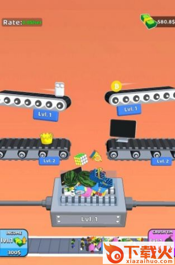 2、多种升级选项,提高粉碎速度,放置游戏,同样可以获得收益。