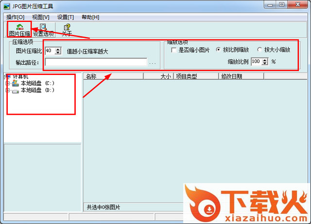 操作步骤:浏览打开图片——设置压缩、缩放选项——图片压缩