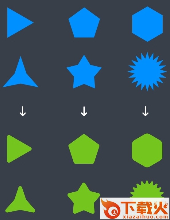 2:“圆角”的类型可以有4种,我们来看看每种是什么效果。